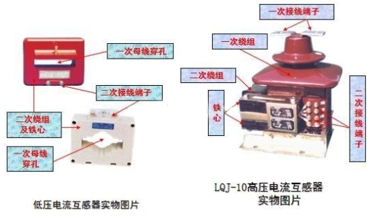 電流互感器作用是將一次回路的大電流變換為二次回路的小電流,供給測量外表和繼電保護設備用的電流電源。電流互感器二次側電流均為5A。電流互感器按原繞組的匝數分為單匝(母線式、芯柱式、套管式)和多匝(線圈式、線環式、串級式);按絕緣方式分為瓷絕緣、澆注絕緣、樹脂澆注等;按一次電壓分為高壓和低壓兩大類;按用處分為測量用和保護用兩類;按準確度等級分為0.1、0.2、0.5、1.0、3.0、10等。電流互感器外形如圖示。